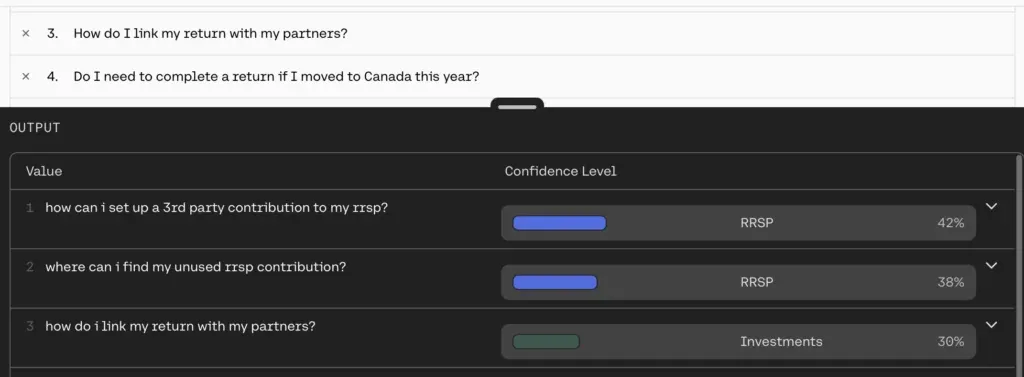 Classifyは、テキストや文章をカテゴリ別に分類する機能です。CSV形式で分類例を提供することで、入力データを自動的に特定のカテゴリに振り分けます。