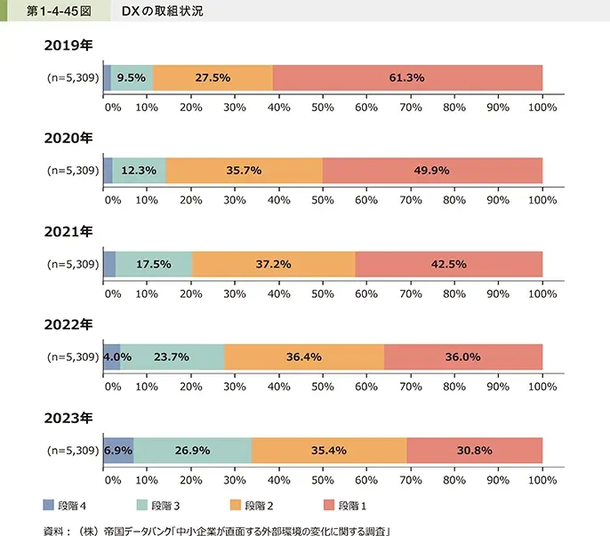2024年版『中小企業白書』によると、IT導入の進捗状況は以下のように分類されています: